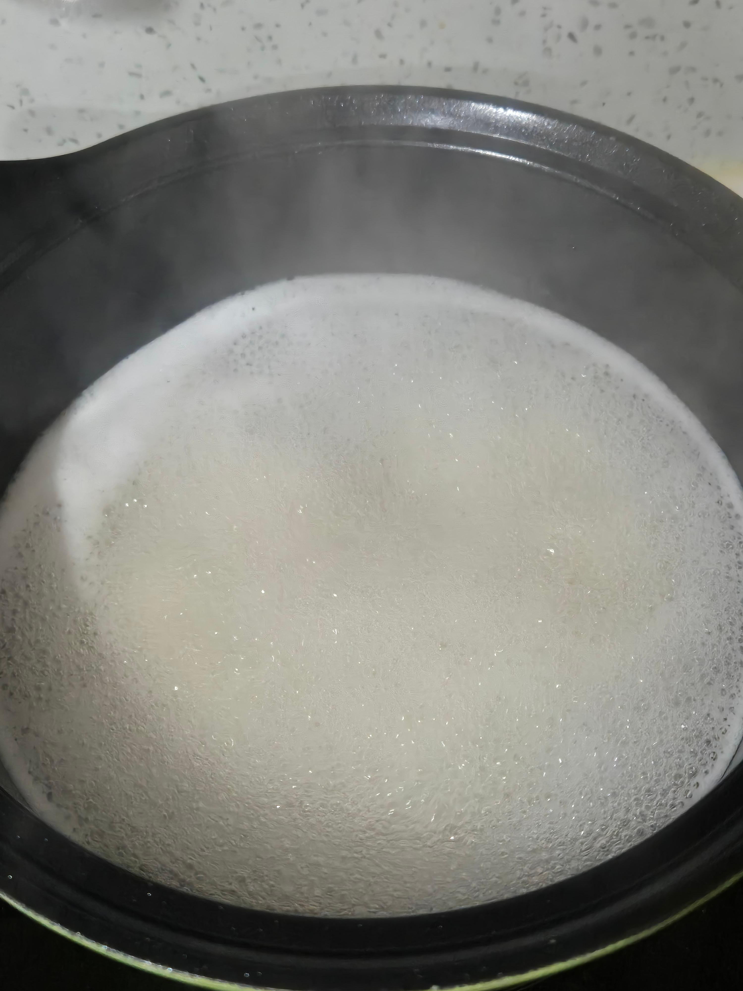 끓어오르면 찬물을 한 바퀴 넣어주세요.
